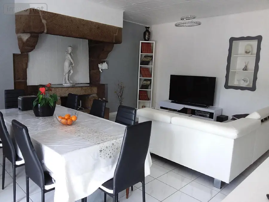 Maison avec jardin et dépendances comprenant au rez-de-chaussée un hall d'entrée, une cuisine aménagée-équipée, une pièce de vie avec cheminée ouverte, une chambre, un bureau, une buanderie, une chaufferie, un WC. A l'étage : trois chambres, une salle de bains, un WC.