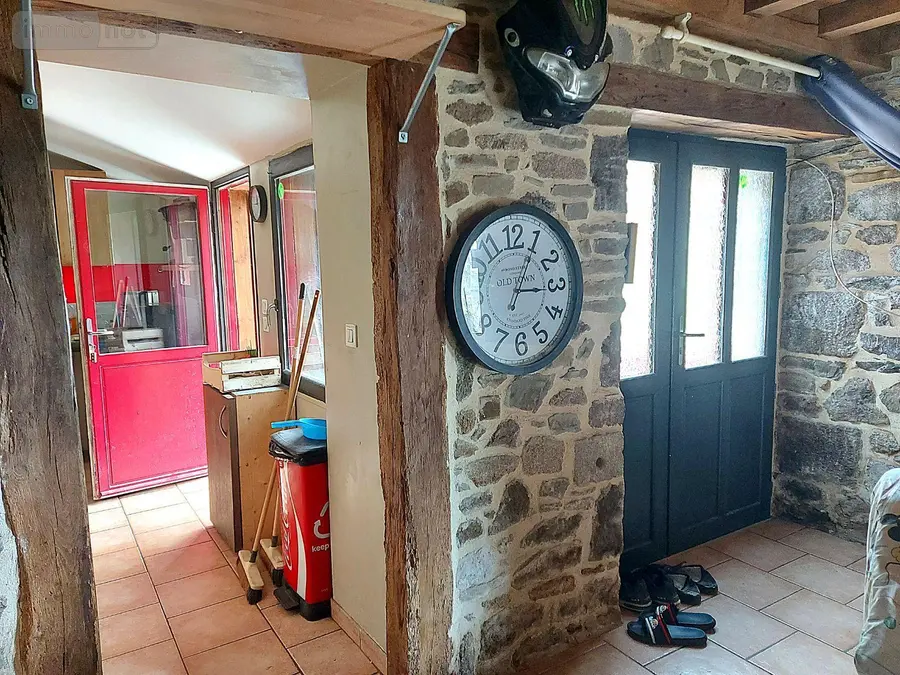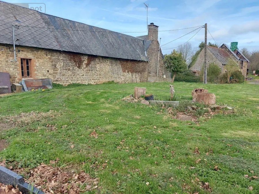 Une maison avec jardin d'une surface de 1644 m2 et dépendances comprenant une pièce de vie avec cheminée-insert, une cuisine, une salle d'eau avec WC.
