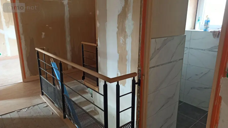 Caractéristiques techniques : Chauffage électrique mais radiateurs non fournis, double vitrage mixte PVC et aluminium, volets roulants électriques, assainissement collectif, couverture en ardoises naturelles et synthétique sur le préau uniquement. Toutes les portes sont absentes et seront à la charge de l'acquéreur. Surface habitable de 134m2 hors bureau.